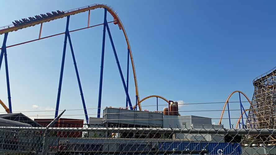 The ride crosses over the Backlot Stunt Coaster.