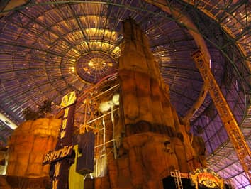 Canyon Blaster is the centrepiece of Adventuredome, winding around a mock mountain.