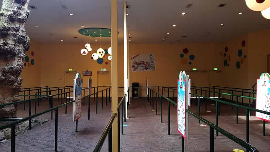 The queue features a few games to keep tots occupied, though the line should move fast given the high capacity of the ride.