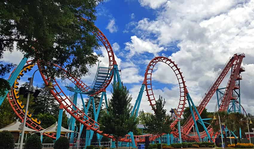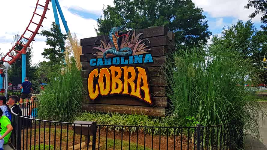 The eastern side of the park, featuring Carolina Cobra, Carolina Goldrusher and Whitewater Falls. Carolina Harbor is beyond.