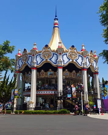 Celebration Plaza is the main entry area of the park, and features Carousel Columbia.