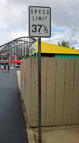 This quirky speed limit sign is a carryover from a Wayne's World themed area that existed during the days of Paramount ownership.