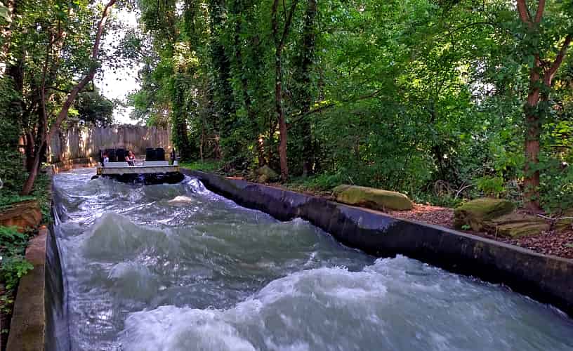 Thunder canyon takes guests along a rapid river and under soaking waterfalls that pour from the sides.