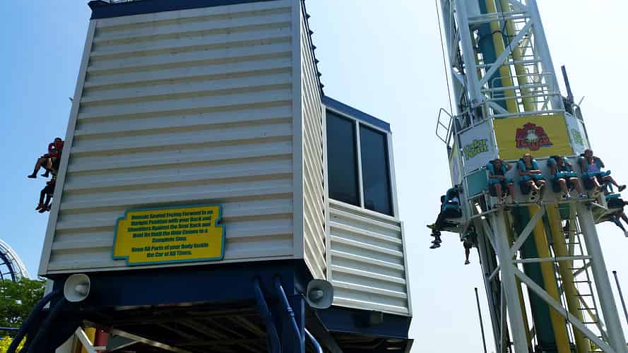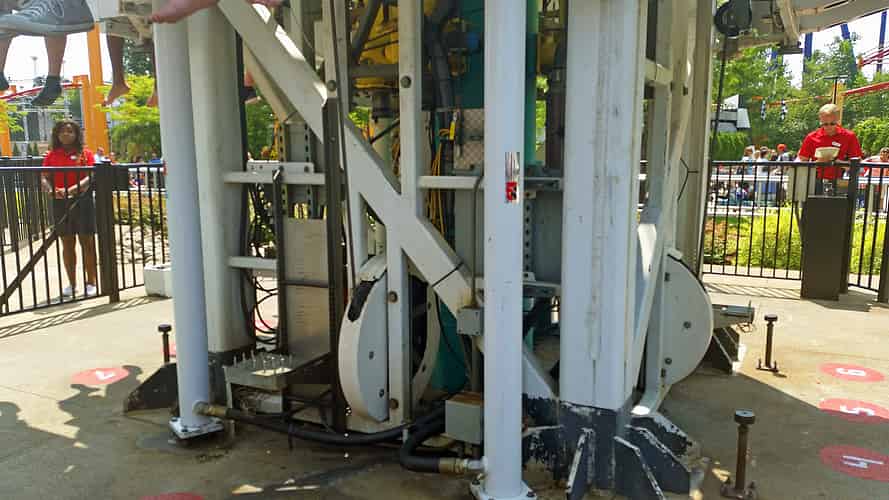 The ride cars are on a loop of cable which controls the rising and falling of the cars.