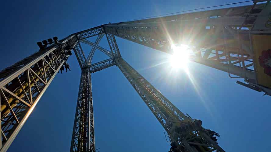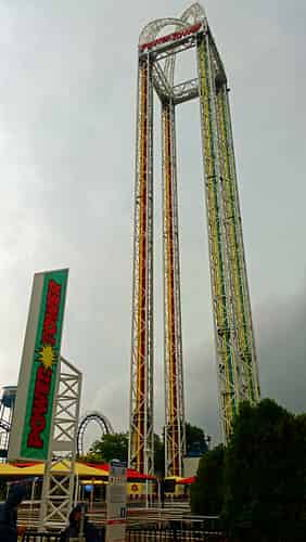 Power tower gives riders the choice of being launched upwards, or being lifted to the top and fired downwards.