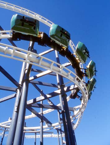 Centrifuge was a Vekoma-built attraction, utilising track and train designs licensed from Arrow Dynamics.