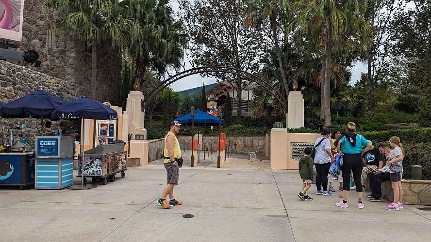 Riders enter via a towering jungle temple.