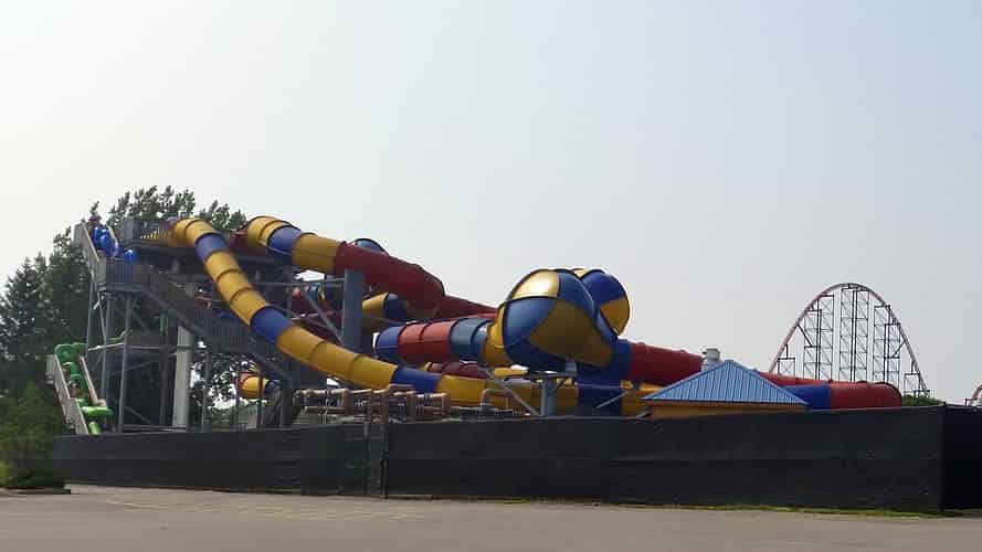 Tornadoes are a water park staple these days. On the far left in the distance is the "Swirl City" complex.
