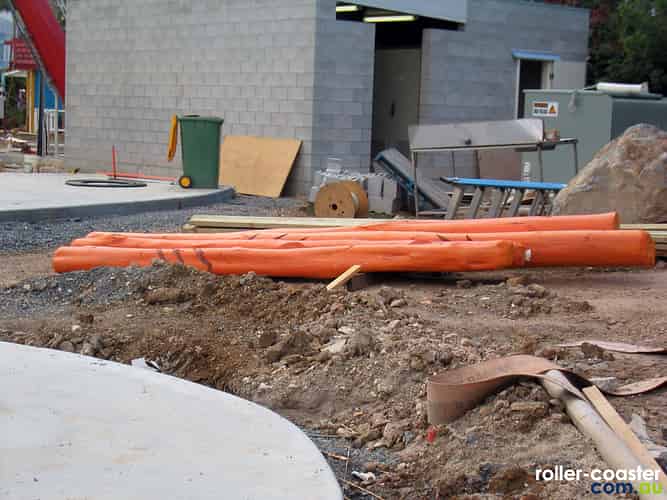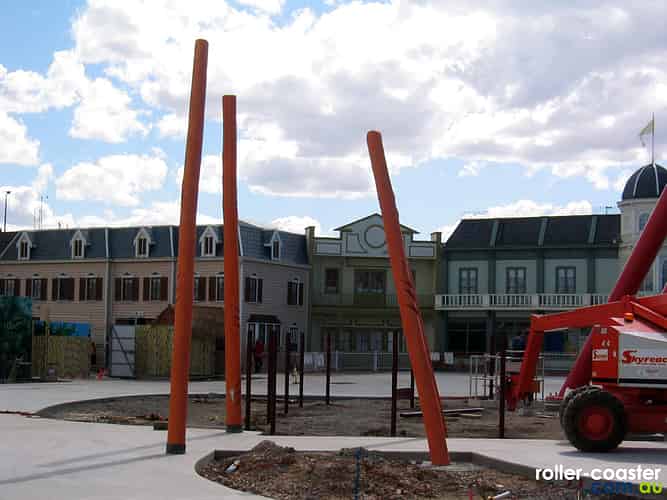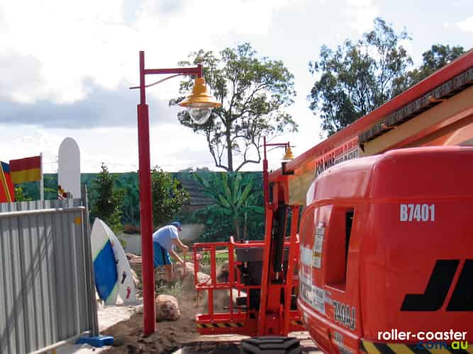 This is where the entrance of the ride will be located. The theme can be seen coming into play with the slashes on the posts.