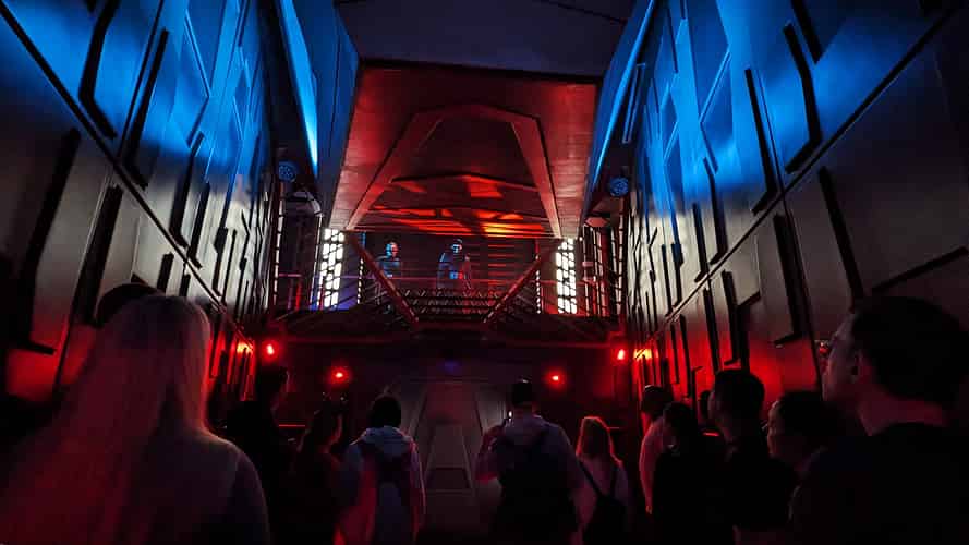 The preshow features an animatronic Hondo Ohnaka, inviting you on a mission to capture some Coaxium fuel.