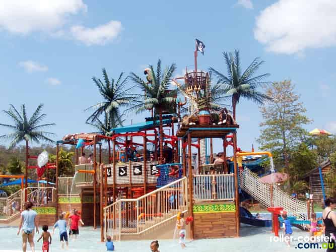 This giant bucket is the centrepiece of Buccaneer Bay.