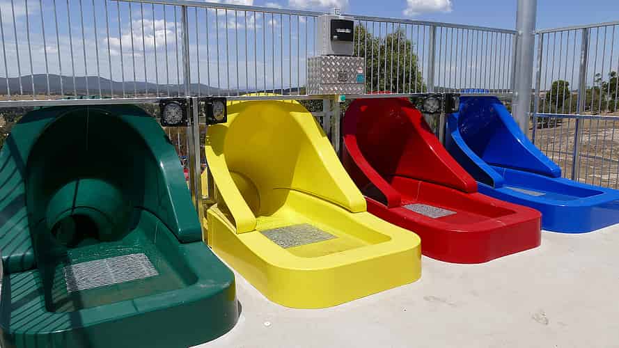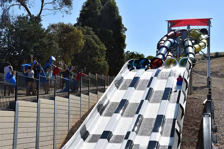 Riders have a choice of 4 different coloured slides. The green and blue slides provide the most airtime. But the red and yellow provide a more out-of-control experience.