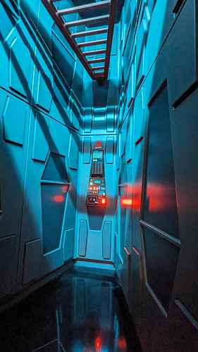 The transport craft is a mild simulator. Everyone stands and grabs onto the bars.