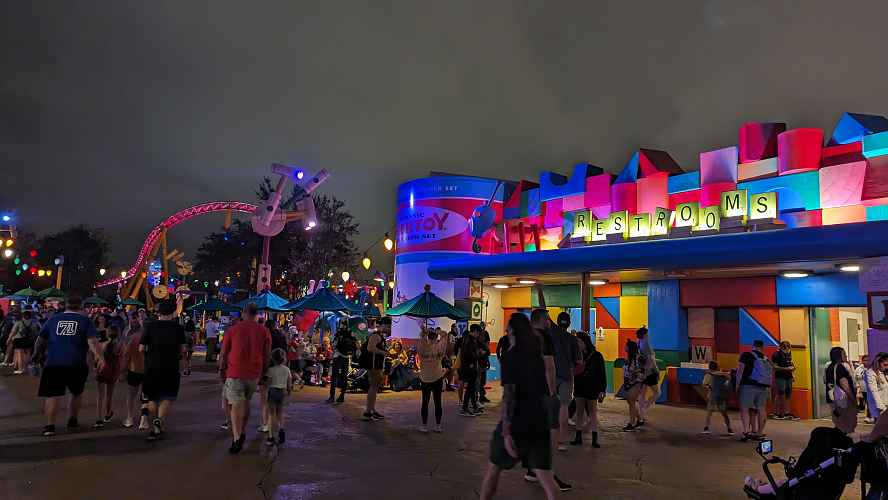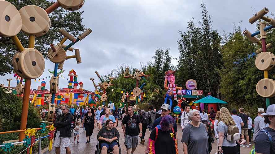 Crowds in Toy Story Land. Slinky Dog Dash can get some of the longest lines in the park.