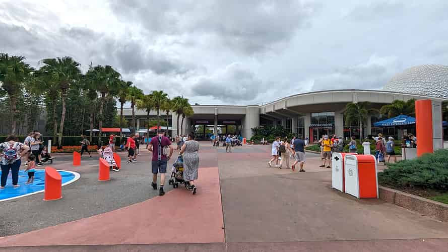 The typical style of the Future World zone at the front of the park.