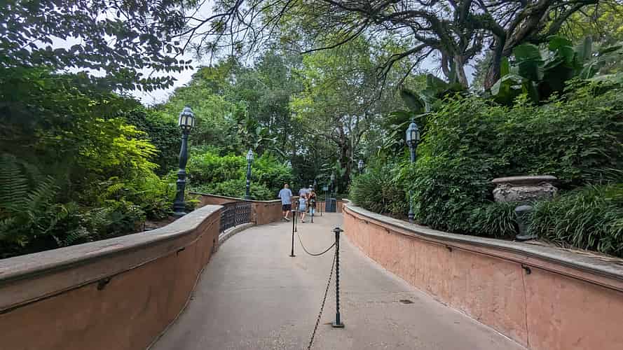 The queue snakes through the gardens.