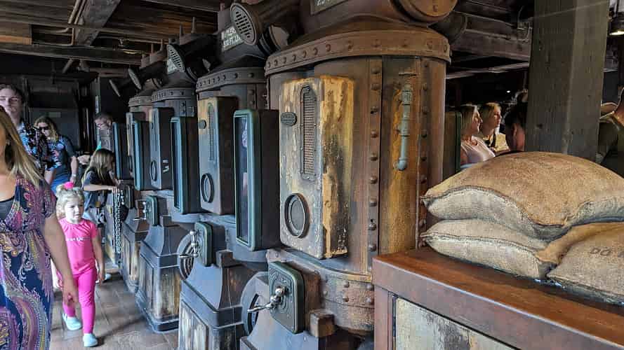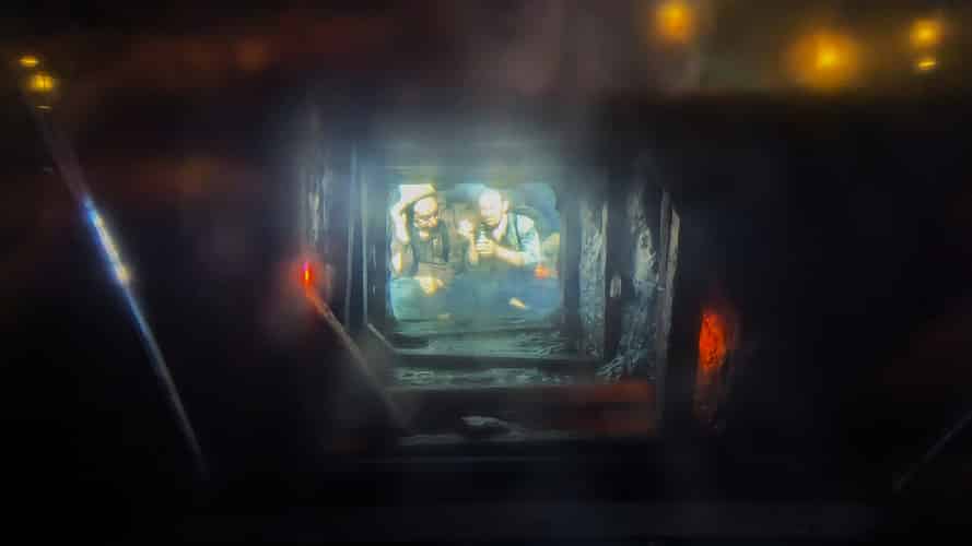 You can look down periscopes to miners working below.