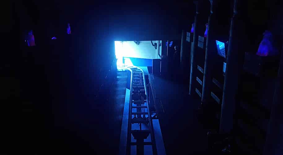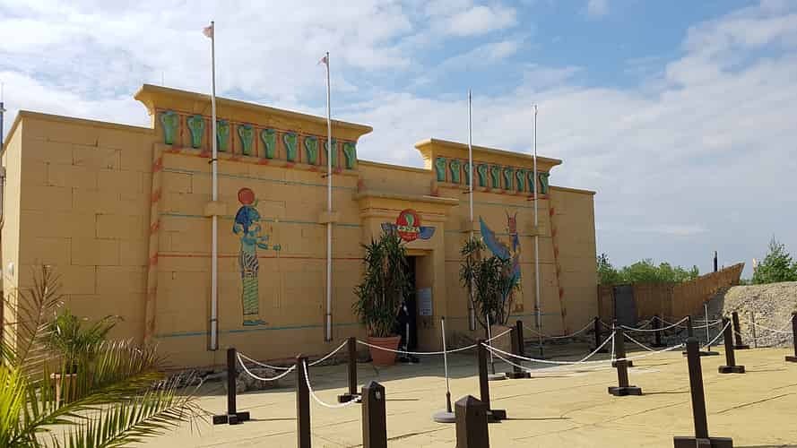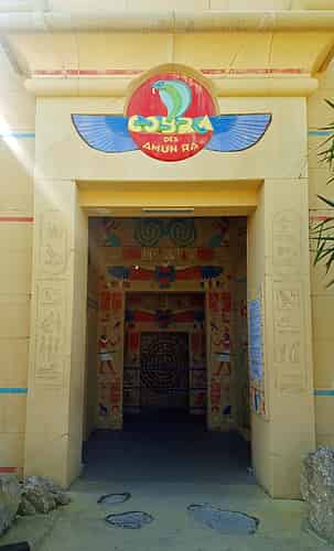 The first part of the ride is a few outdoor twists an turns with choppy water, with views of Cobra des Amun Ra.
