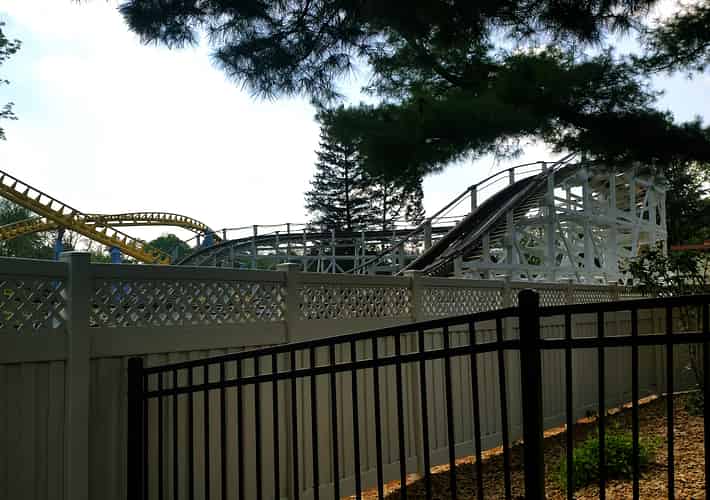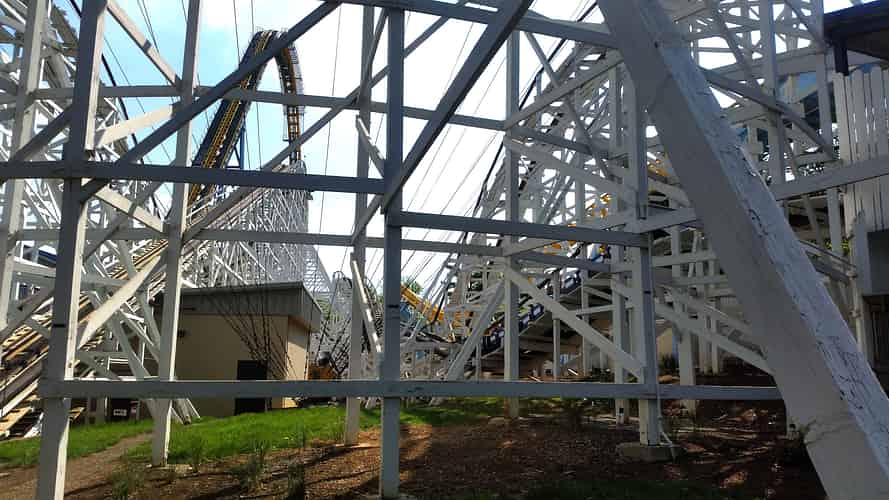 A fun game at Hersheypark is to see how many coasters you can squeeze into one shot. Here we can see superdooperLooper, Comet, and Skyrush.