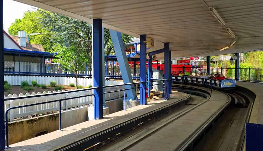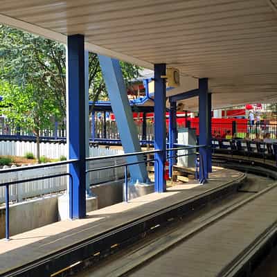 The brakes for Skyrush are high enough to clear the loading station of Comet, before the track drops down to the block brake and transfer track area.
