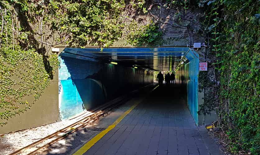 Most of the park is on the western side of the Gold Coast highway. Pedestrians and train riders cross under via a shared tunnel.