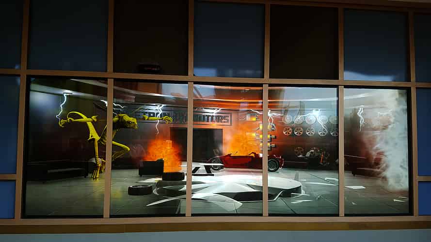 Sinestros activity involves controlling the creature Parallax to basically smash up an expensive car in a show room. This achieved with a Kinect type motion tracking camera and a lot of arm waving by participants.