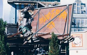 The billboard morphs into something more disturbing as a result of the apparent hallucination.