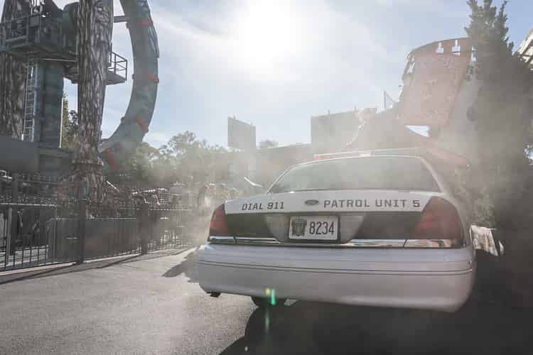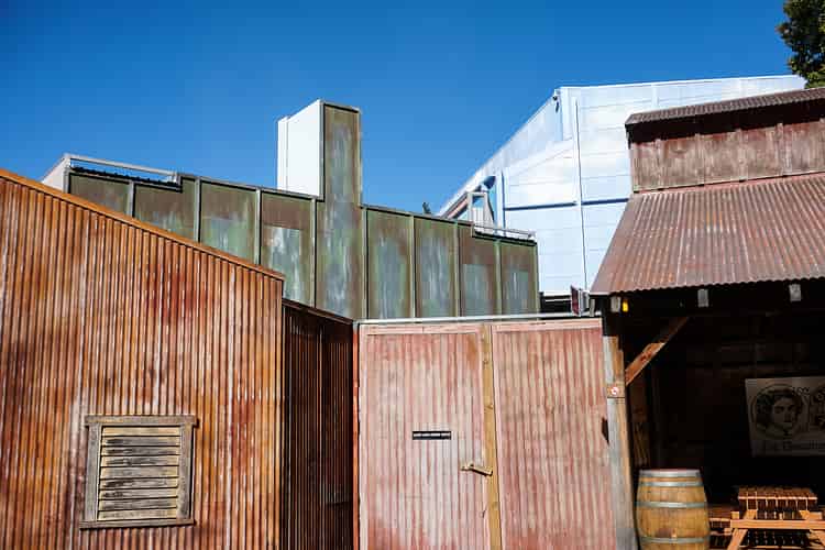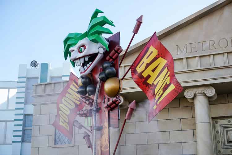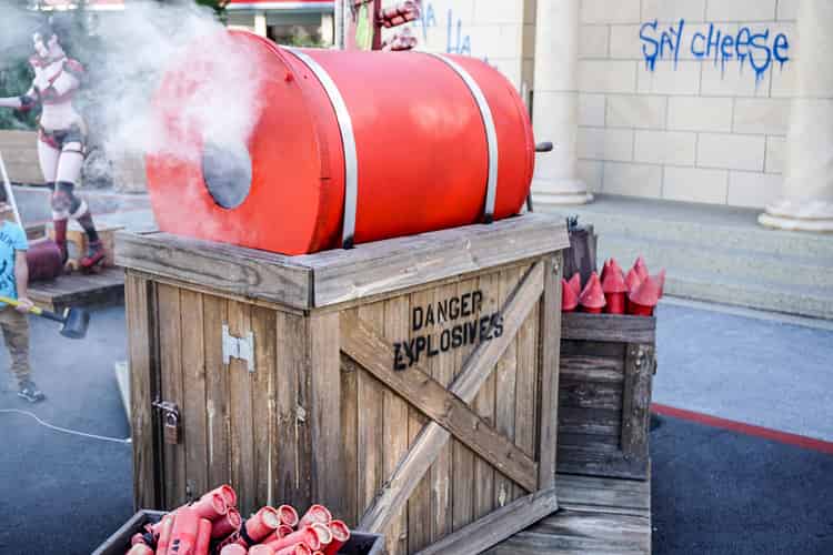 The Joker's explosives blend seamlessly into the western area at Movie World.