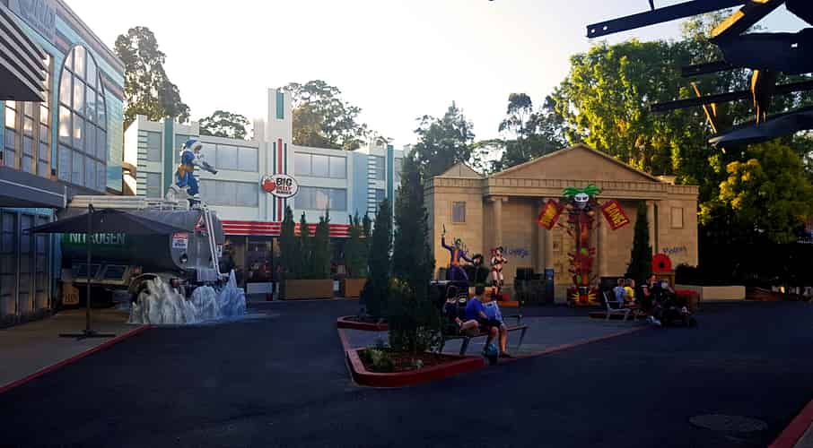 And from the western area the Super-Villains Unleashed buildings blend into the skyline.