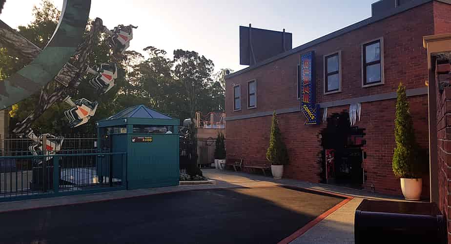 At Metron Motors guests scan their RFID band and use motion capture to smash up an expensive display car, guided by Sinestro and Parallax using the yellow power of fear.