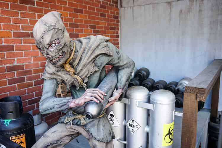 Scarecrow pumps his mind-altering gasses into the air every few minutes.