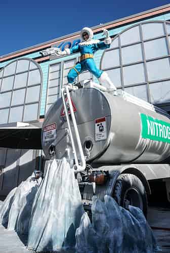 Captain Cold blasts liquid nitrogen onto unsuspecting guests.
