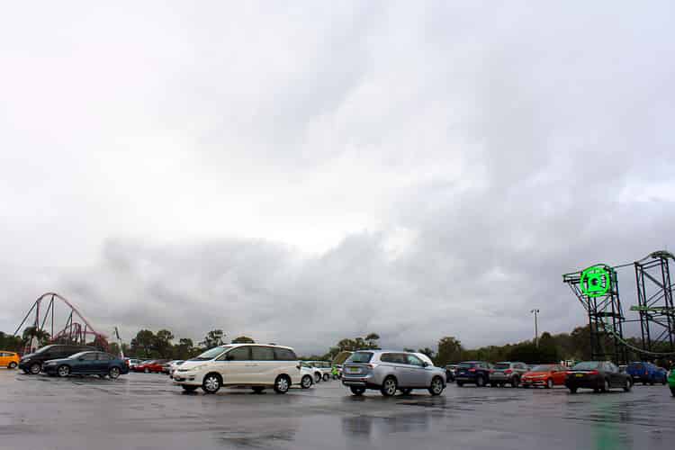 A very different view for guests as they drive into Warner Bros. Movie World.