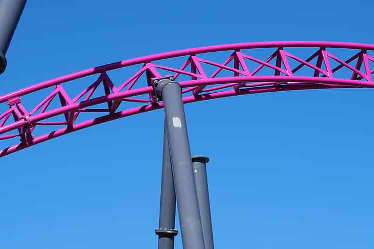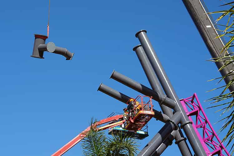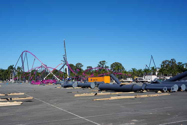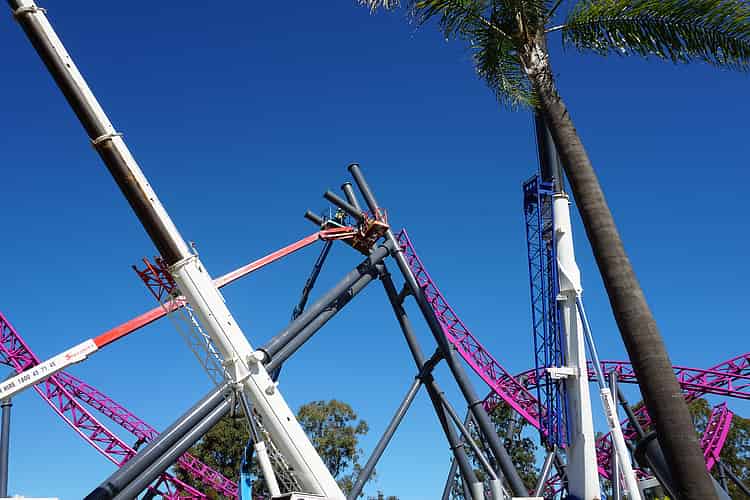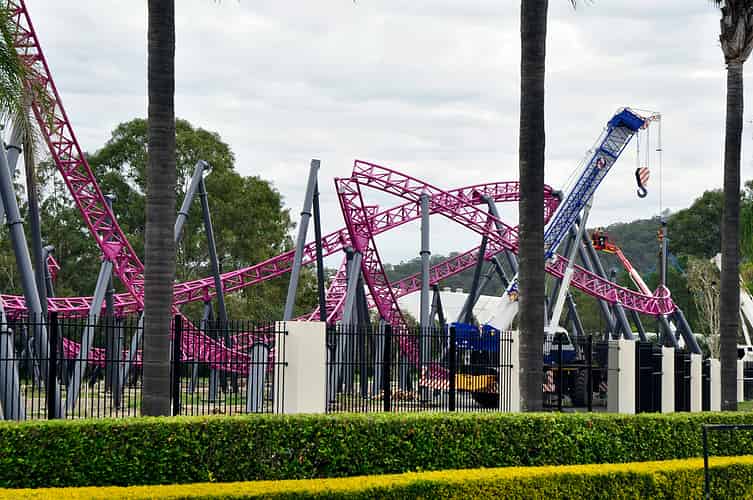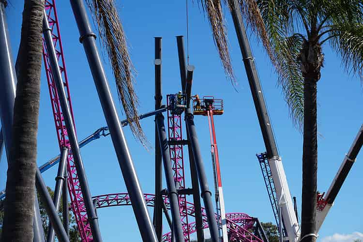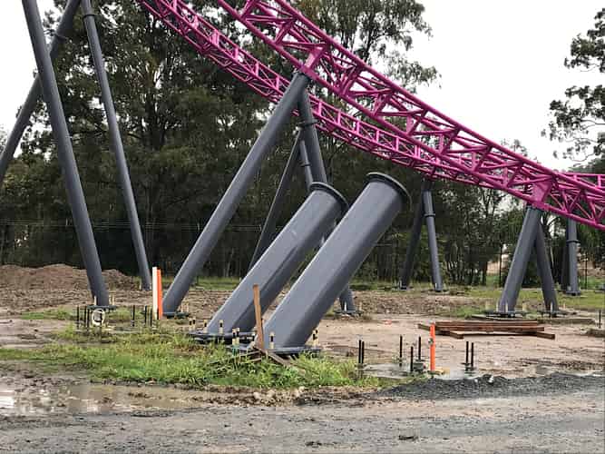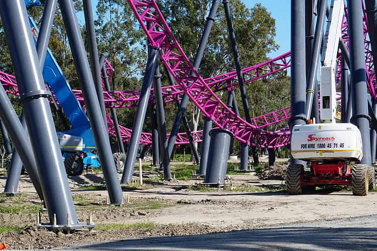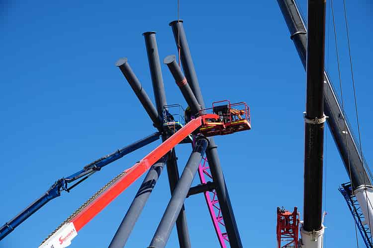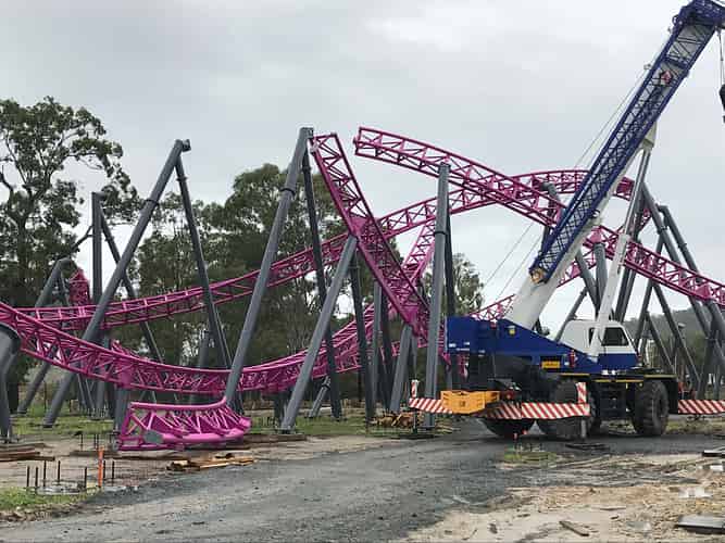 It's quite bizarre to see the gap in the supports, but of course the structure is perfectly stable while the ride is still under construction.