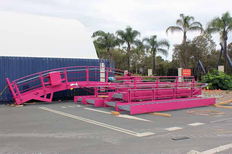 Within the next few months this curved staircase will be the tallest point at Movie World, 60-odd metres above ground.