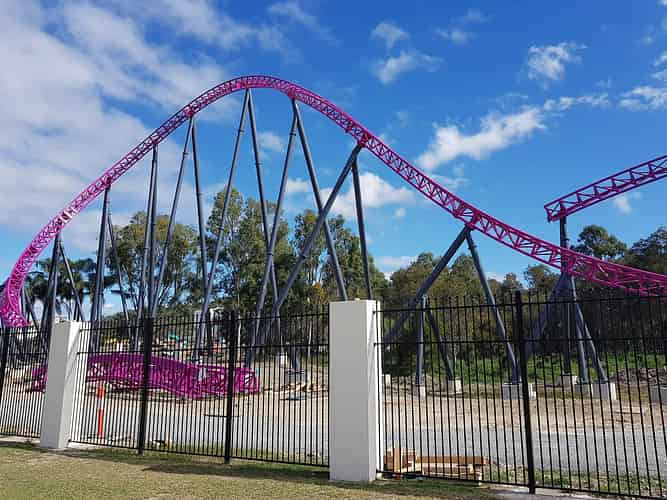 Photos really don't do this ride's towering presence justice. So here's a photo of it towering over the front of Movie World.