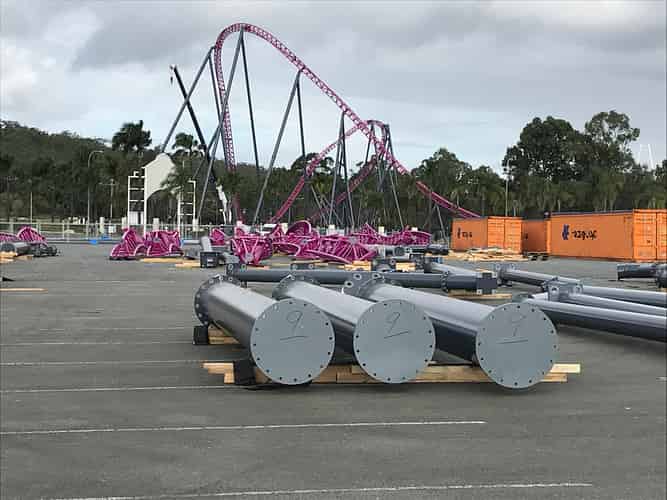These thick columns will all be bolted together to create some of the larger supports for the ride. These three columns together will total no more than 30 metres – still only around half of the ride's total height.