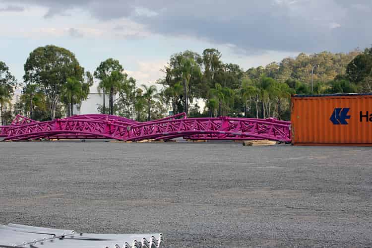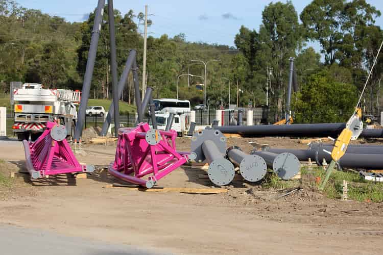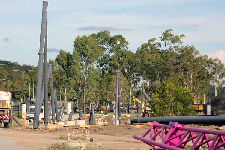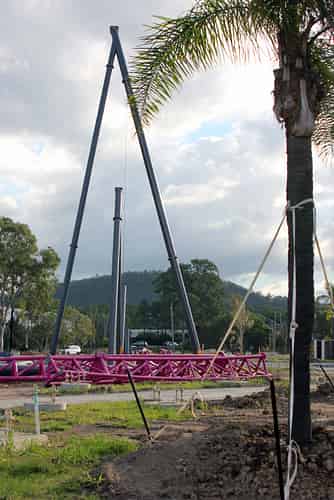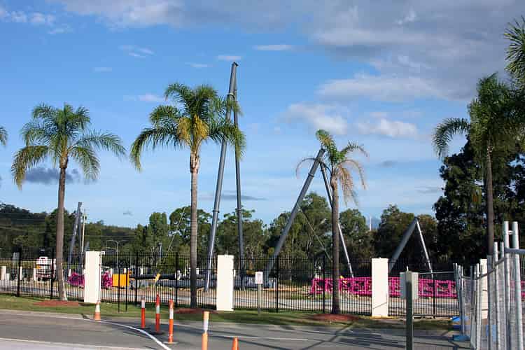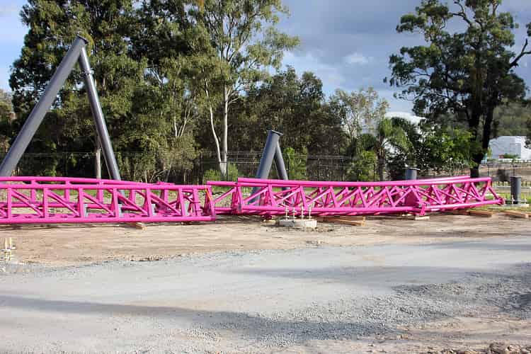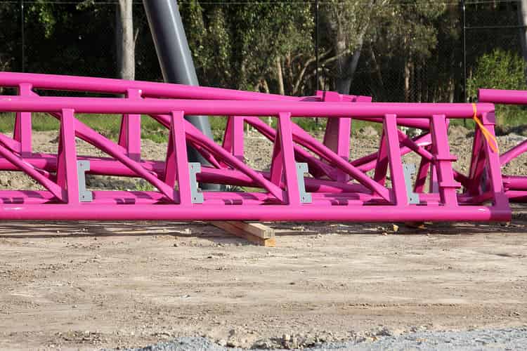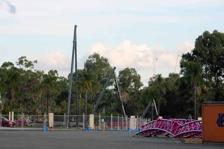 The first of the support columns go vertical on Movie World's hypercoaster.