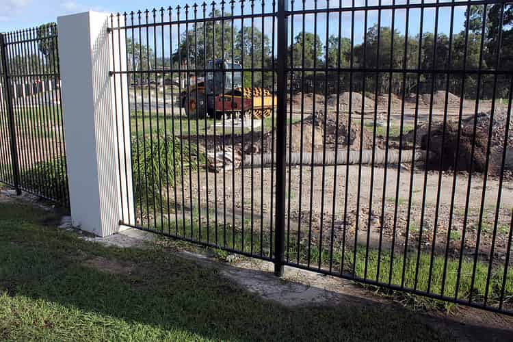 Some of the paint on the support columns has been scuffed during transport or construction. Primer has been applied so that they can be repainted later in the construction process.