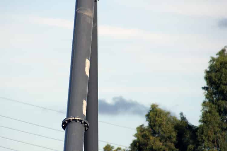 The odd angle of this column and its mounting plate suggests a fast banked turn.
