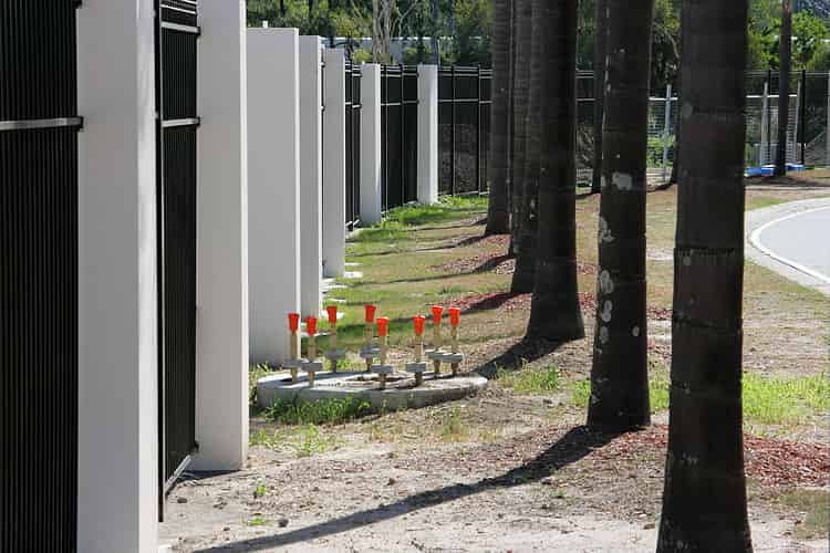 This inlet in the fence suggests that this footing will be home to an angled support.