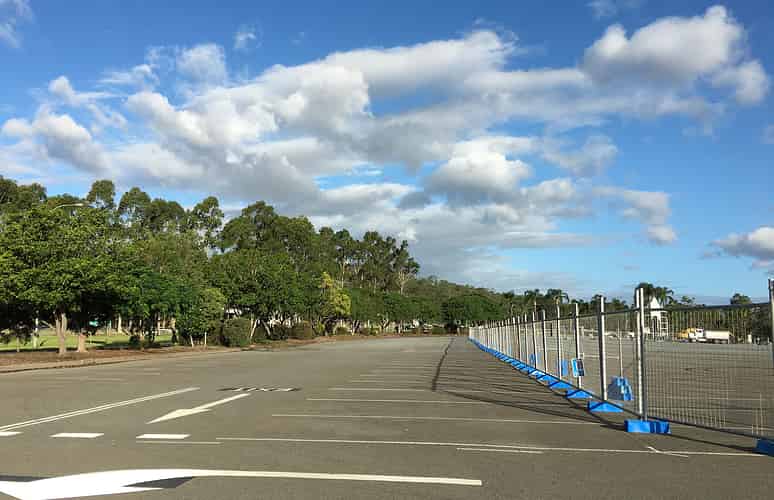 This section of the car park wasn't fenced off, indicating it could join the cutaway for a temporary entrance to Movie World during construction.