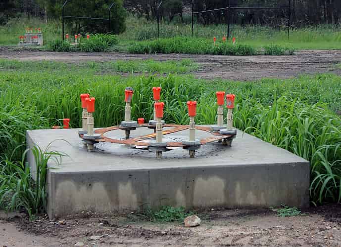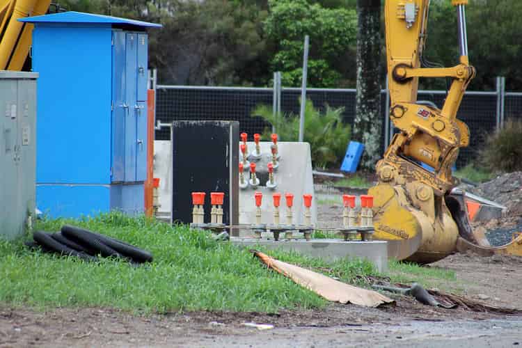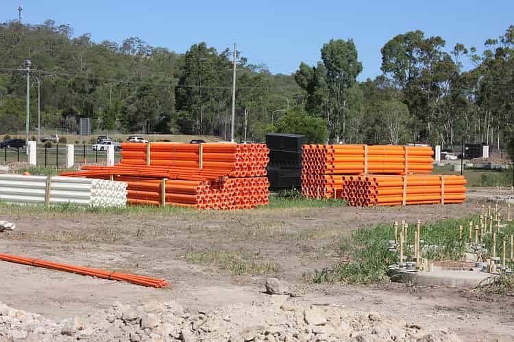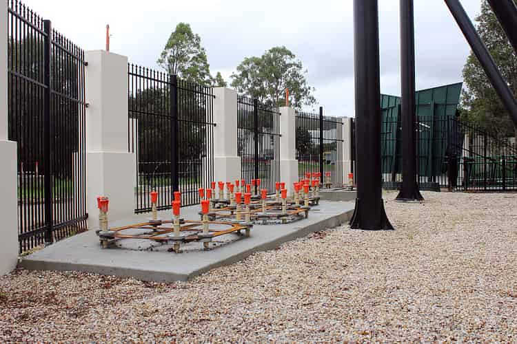 These thin conduits connect to the perimeter fencing to power the lighting.