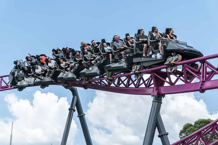 You're flung out of your seat into the lapbar restraint at the top of the drop, and you won't touch it again until you're barelling along at 115km/hr at the bottom.
