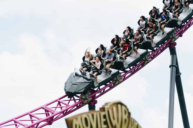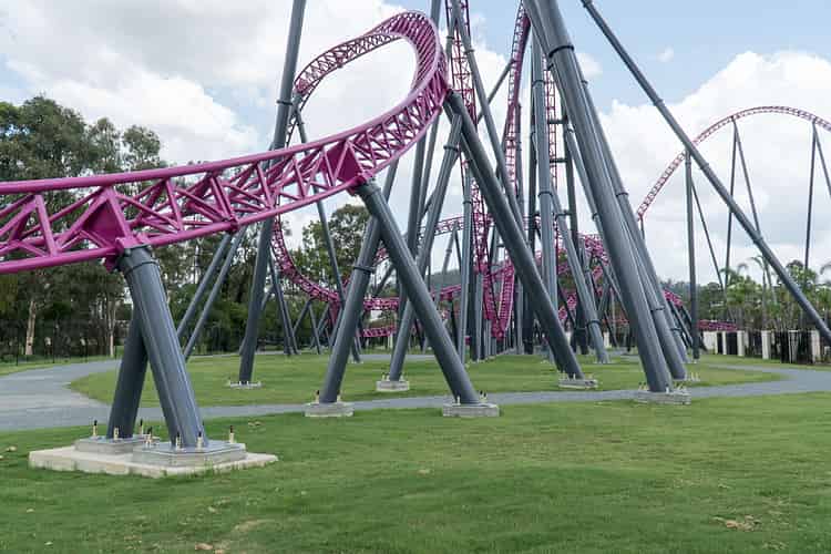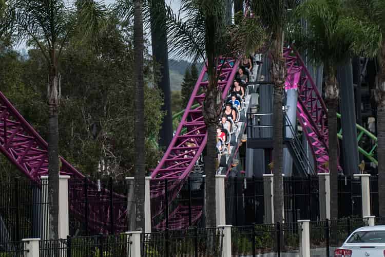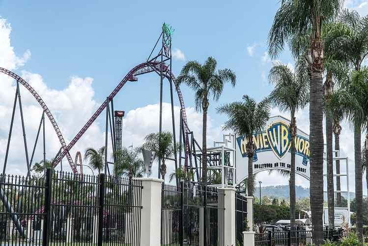 There's a lot of roller coaster goodness towering over the front of Movie World.