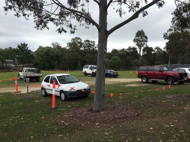 The blue spraypainted ? on the ground is the location to drill piles for footings. In the background we can see that clearing is underway for what would be the logical station area for a roller coaster given its ease of access from within Movie World.