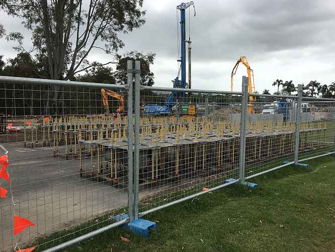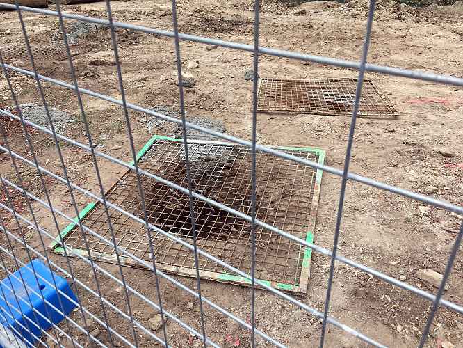 Between drilling and filling with reinforced steel and concrete, it's best that construction workers don't fall down these holes that are 5-10 metres deep in some cases.