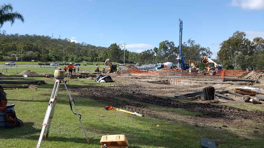 Surveying equipment on site. Getting footings correctly located is crucial to ensuring the prefabricated segments of roller coaster track and support all fit together.