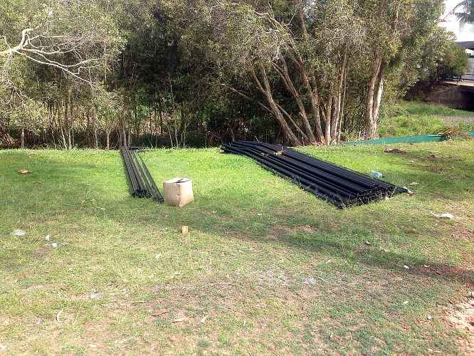 Huge lengths of rebar have appeared too. These will form the roller-coaster's footings. The sheer length of these would suggest some pretty significant support columns. Each will be buried and surrounded by concrete more or less flush with the ground.