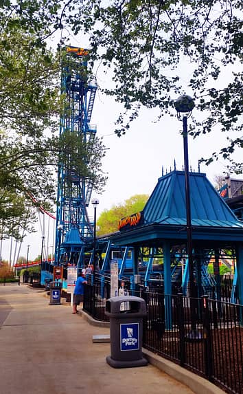 Demon Drop is an early example of a freefall ride, built by Intamin.